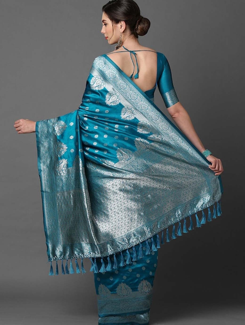 Blue and silver-coloured banarasi saree