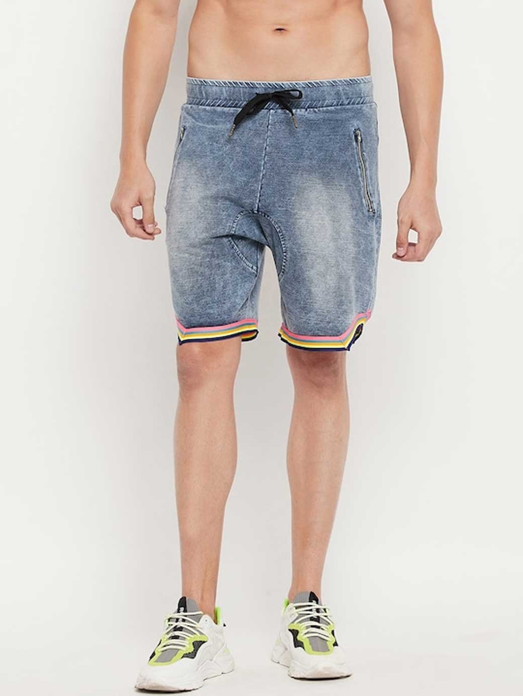 Men Blue Washed Denim Shorts