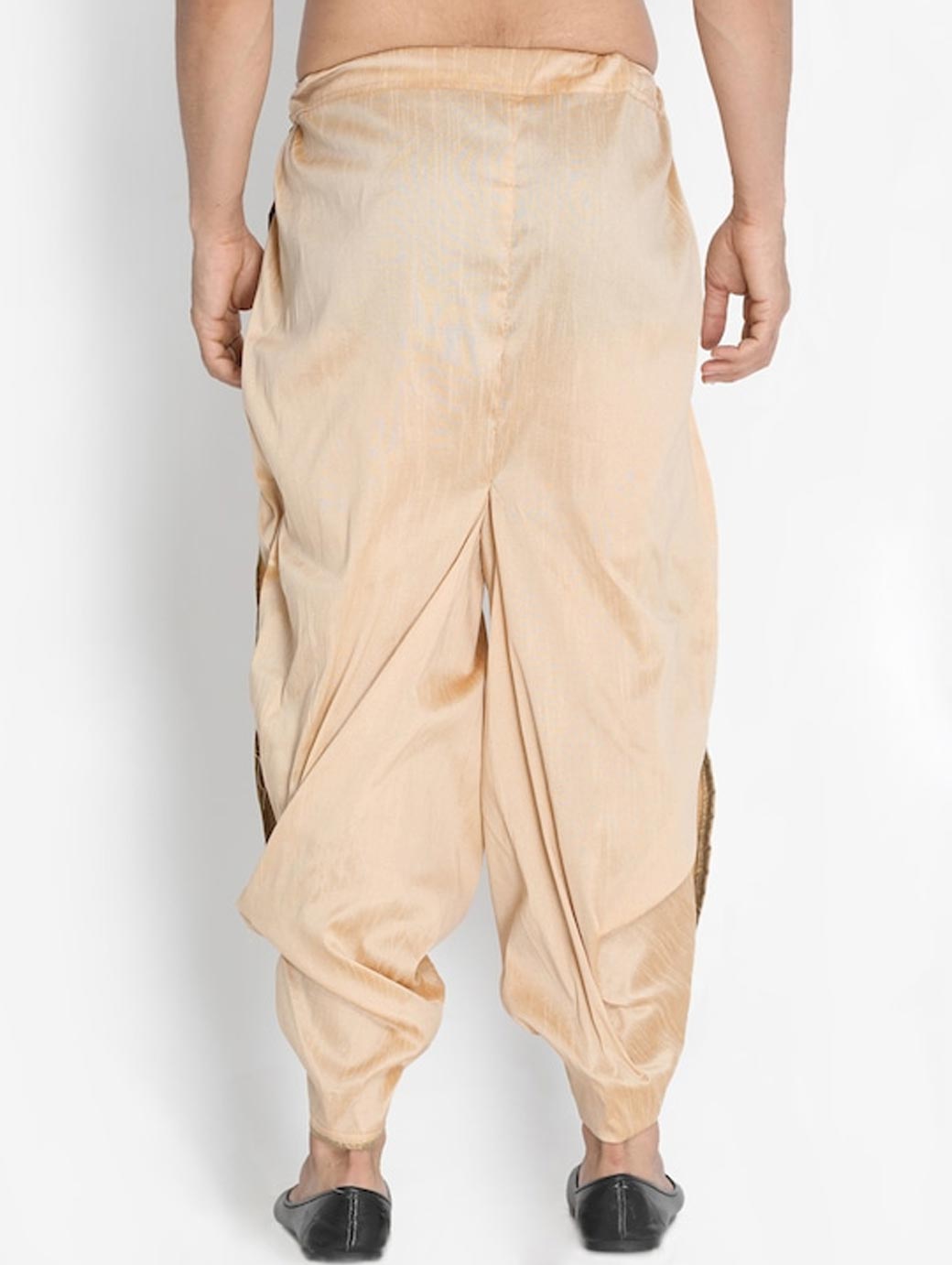 Gold-toned solid dhotis, has an elasticated waistband witha drawstring fastening