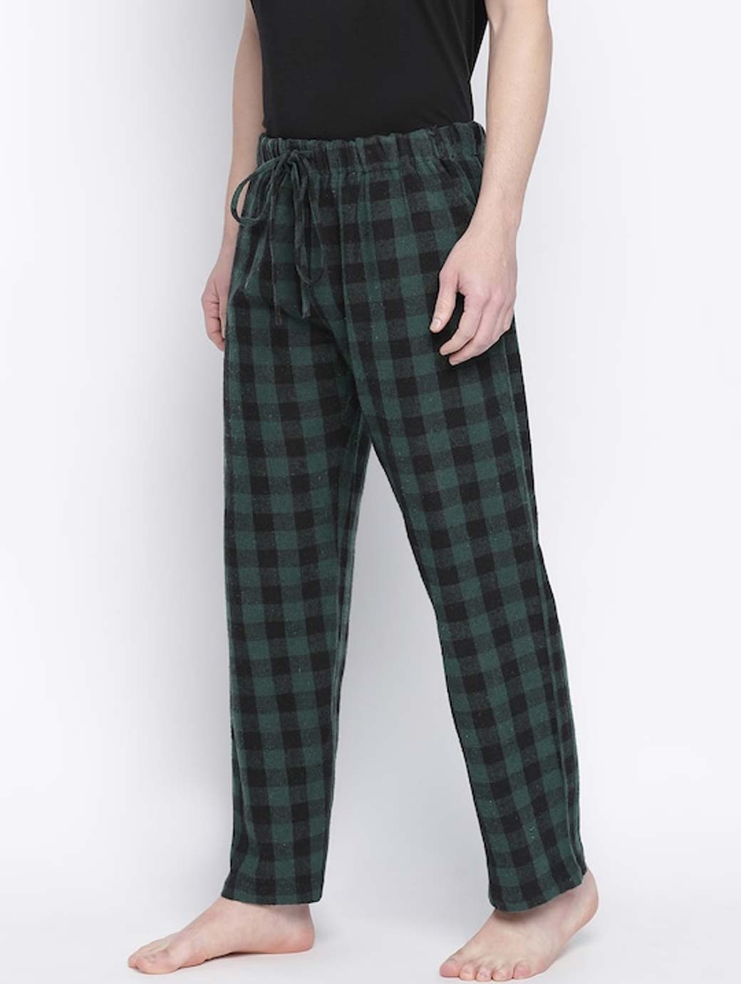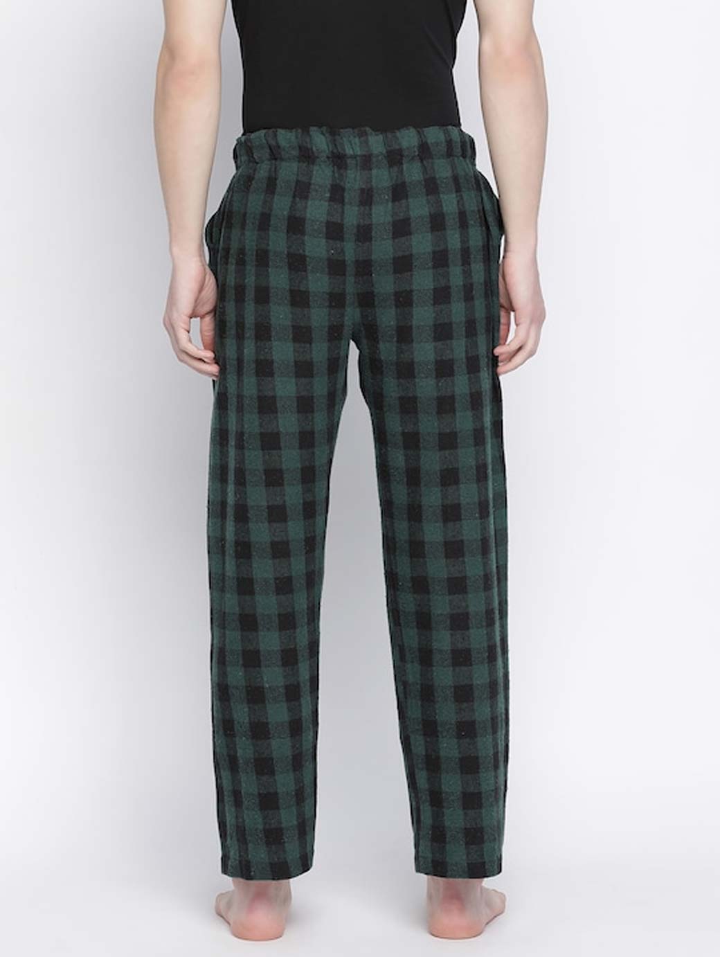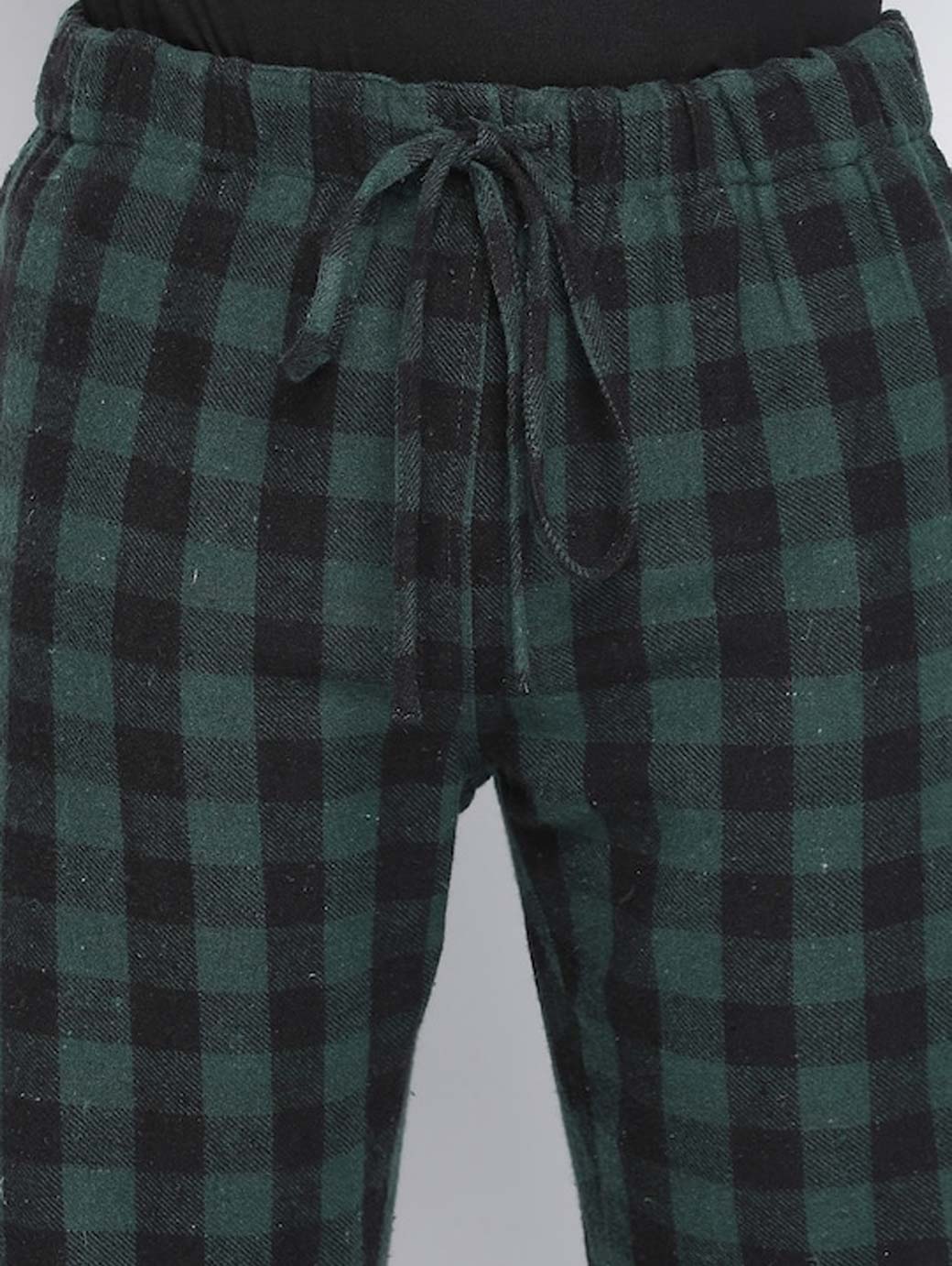 Green checked lounge pants, has elasticated waistband with drawstring closure and 2 pockets