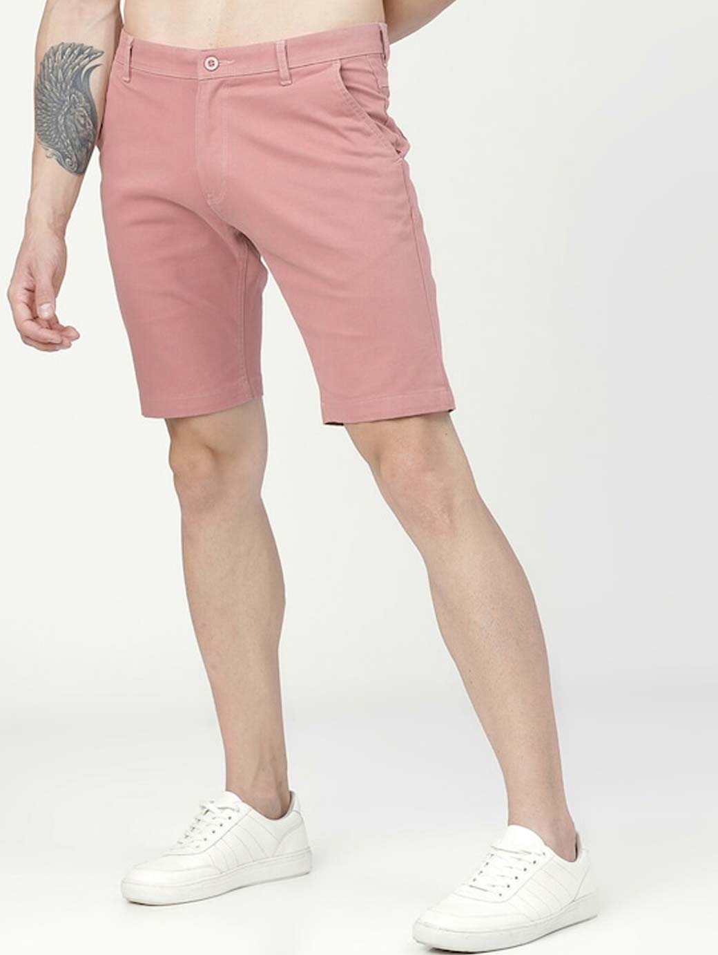 Men Pink Solid Slim Fit Regular Shorts
