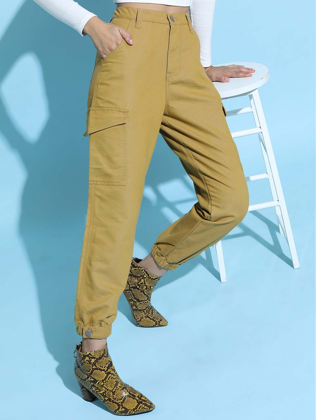 Coloured shade, no fade olive green jeans Jogger, mid-rise Low distress Non stretchable Length: regular